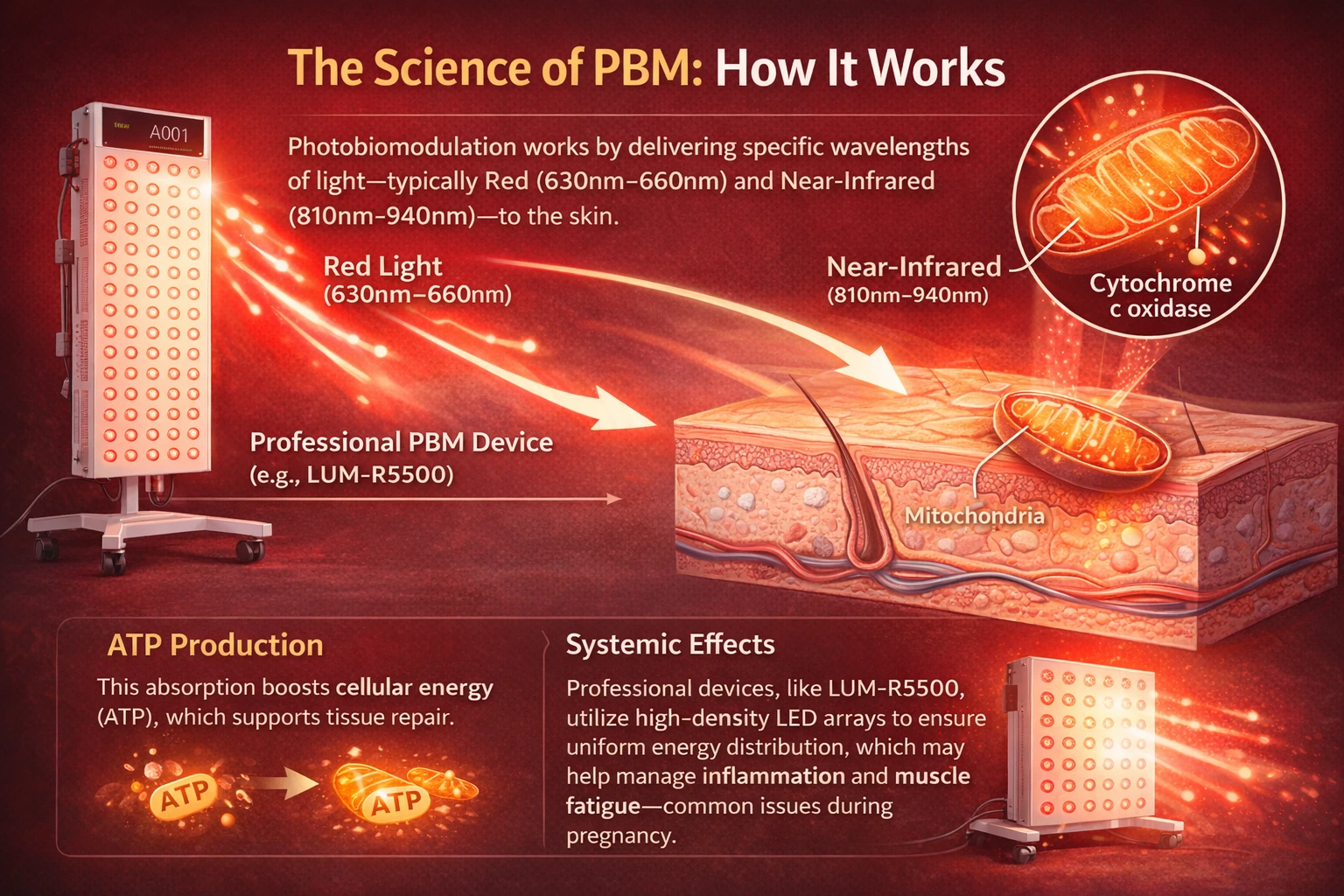 Systemic Effects: Professional devices, like the LUM-R5500, utilize high-density LED arrays to ensure uniform energy distribution, which may help manage inflammation and muscle fatigue—common issues during pregnancy.